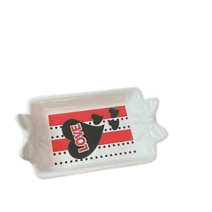 این ظرف های کوچک طراحی کلاسیک و زیبایی دارند. این ظرف از سرامیک مرغوب ساخته شده است. طرح زیبای love کار شده روی آن، جلوهی چشمگیری به ظرف داده است. این ظرف مناسب برای سرو انواع خرما و زیتون است.