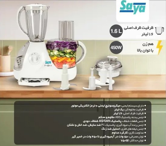 چرا که اگر قطعه ای از آن خراب شود، هم گارانتی معتبری دارد و هم تجهیزات آن به آسانی با قیمتی مناسب پیدا می شود. بهترین مدل غذاساز پارس خزر یا سایا، غذاساز سایا مدل پروکیت (PROKIT) 11 کاره است. این مورد را در نظر داشته باشید که محصولات این شرکت از کیفیت بالایی برخوردار هستند و 25 ماه گارانتی با 10 سال خدمات پس از فروش به همراه تضمین قطعات دارند!