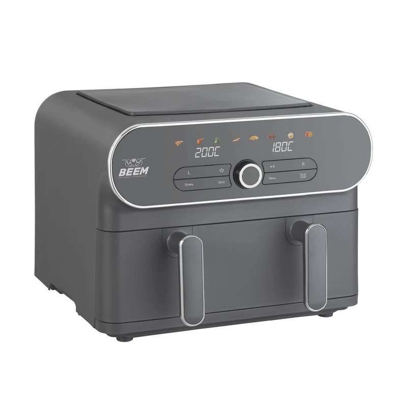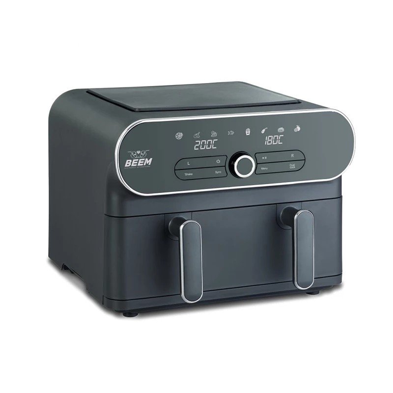 سرخ کن بیم مدل 1006 نیز از سرخ کنهای دوقلو است، با این تفاوت که مییتوانید از سبدهای آن به صورت یکپارچه و با ظرفیت کلی 11 لیتر نیز استفاده کنید. توان کلی سرخ کن 1700 وات با دو سبد هریک با ظرفیت 5.5 میلی لیتر از جنس چدنی نچسب است. با برداشتن تقسیم کننده سبدها میتوانید از ظرفیت کلی آن استفاده کنید و یک ماهی یا مرغ کامل در آن طبخ نمایید. این سرخ کن بیم علاوه بر 8 عدد برنامههای پیش فرض، قابلیت تنظیم زمان و دما به صورت دستی دارد که از طریق صفحه نمایشگر لمسی آن انجام میشود. سرخ کردن، کباب کردن، بریان نمودن، گرم نگهداشتن، گرم کردن مجدد، یخ زدایی، خشک کردن میوه و سبزیجات و غیره از عملکردهای کلی این محصول هستند. این محصول ویژگیهای دیگری نیز دارد که در ادامه به آنها میپردازیم.