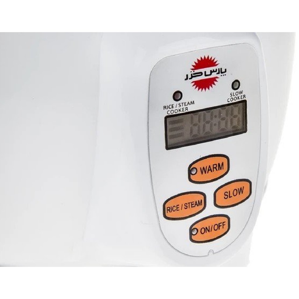 | سایر توضیحات | دارای قابلیت بخارپز و آرامپز حالت گرمنگهدارنده درب شیشهای سوپاپدار جهت خروج بخار ظرف مخصوص پخت برنج با روکش مواد تفلون نچسب بهداشتی و مقاوم با کیفیت بالا استفاده از مواد پلاستیکی بهداشتی و قطعات مقاوم در برابر حرارت |