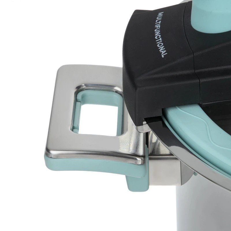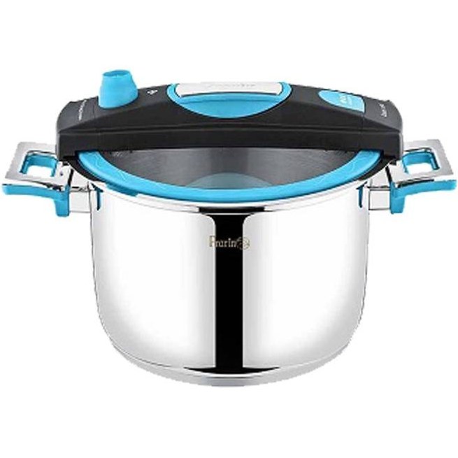 استفاده از ظروفی با کاربریهای متنوع شما را از خریدن سایر لوازم بینیاز میکند. سریع پز پرارین با بدنهای از جنس استیل ضدزنگ یکی از کاربردیترین ظروف آشپزخانه است. گاهی میخواهید در کوتاهترین زمان ممکن خوراکهایی خوشطعم برای خانواده آماده کنید که در این مواقع تنها راه چاره استفاده از سریع پز است. اگر یک خانواده پر جمعیت حدود 6 نفره دارید، بهتر است این محصول را با گنجایش 5لیتر خریداری کنید. در کنار این زودپز یک درپوش شیشه مقاوم در برابر حرارت دارید که با قاب فلزی و سوپاپ خروج بخار برای انواع غذا کاربرد دارد. درپوش این محصول دارای سیستم تخلیه فشار بوده و در بالاترین سطح ایمنی قرار دارد. درپوش این سریع پز به گونهای طراحی شده است که تنها با یک دست و بهسادگی میتوانید آن را باز و بسته کنید. طراحی جدید و خاص این محصول در کنار قابلیتهای زیاد آن موجب عمر طولانی این زودپز میشود. روی درب زودپز یک سوپاپ بخار تعبیه شده که با چرخاندن آن میتوان میزان بخار خروجی را تنظیم نمود و هم میتوان دستگاه را در حالت زودپز قرار داد.