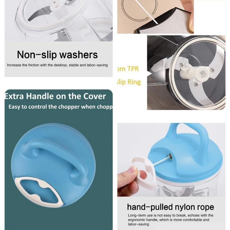 این خرد کن نخی 2 کاره ، محصولی با طراحی نوین و در عین حال بسیار پر کاربرد در آشپزخانه ها است . این خرد کن بر خلاف محصولات مشابه ، نحوه عملکرد بسیار متفاوتی دارد . بر روی درب محصول یک دستگیره قرقره ای قرار دارد که با کشیدن آن ، تیغه های دستگاه شروع به چرخش و خرد کردن مواد غذایی داخل محفظه می کنند . شما می توانید از این خرد کن همه کاره آشپزخانه ، به عنوان یک مخلوط کن دستی هم استفاده کنید ، تنها کافیست جای تیغه برش را با همزن پلاستیکی عوض کنید . ظرفیت محفظه دستگاه 700 میلی لیتر است که شما می توانید از آن برای خرد کردن و مخلوط کردن انواع مواد غذایی استفاده نمایید .