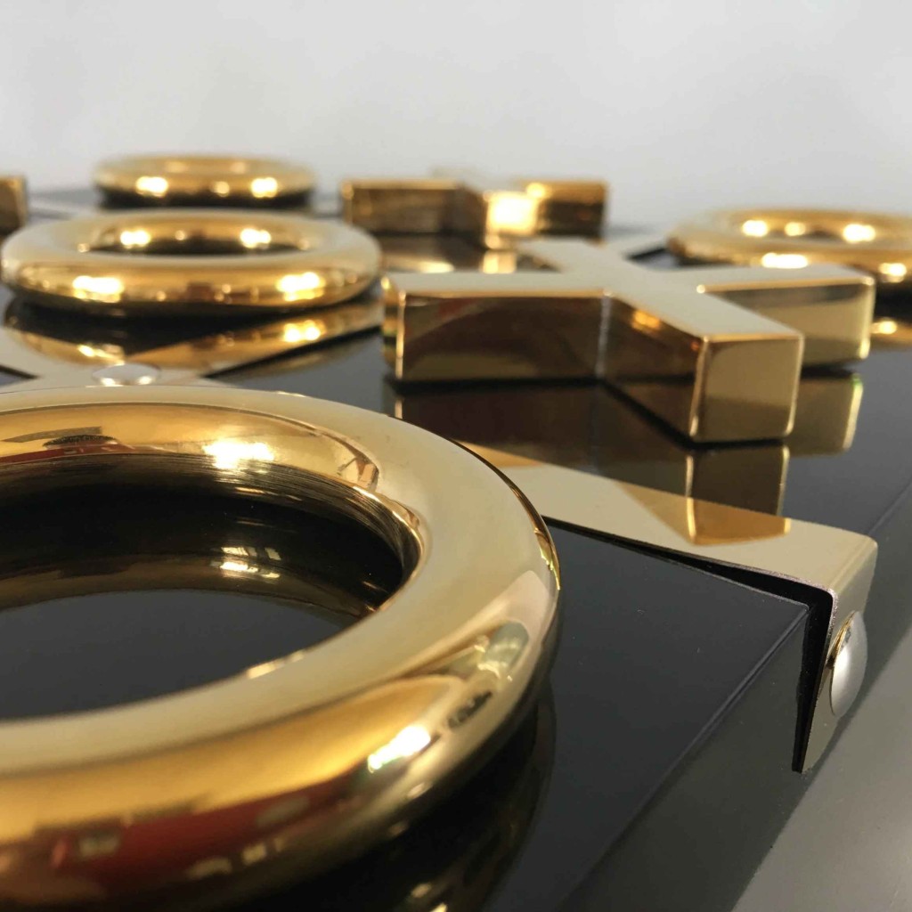 بازی کلاسیک تیک تاک تو، ست مشکی و طلایی ما قطعهای لوکس و بینظیر برای افزودن به کلکسیون شماست. این ست از اکریلیک با کیفیت بالا ساخته شده و هر ست دارای جزئیات طلایی زیبا با Xها و Osهای ثابت است. رنگ: مشکی، طلایی