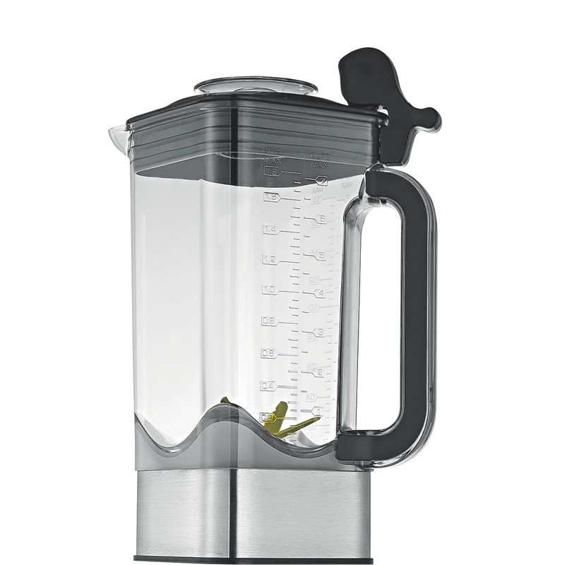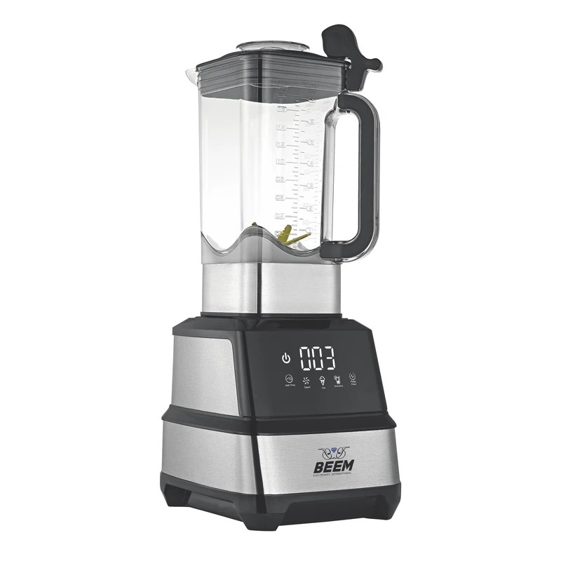 مخلوط کن بیم مدل 1810 دستگاهی قدرتمند با توان 1600 وات و ظرفیت پارچ 1.8 میلی لیتری است که از جنس پارچ شیشهای مندرج و بدنه استیل ساخته شده است. مخلوط کن بیم دارای تنظیمات سرعت و عملکرد پالس یا همان لحظهای است و حتی میتوانید با این دستگاه یخ خرد کنید. کافی است مواد را داخل آن بریزید و دکمه را بفشارید تا تیغههای 6 پره بسیار تیزش در کسری از ثانیه مواد را مخلوط و خرد کنند. این محصول، مخلوط کن تک کاره است و تنظیمات آن کاملاً دیجیتالی است. از مخلوط کن بیم میتوانید برای تهیه اسموتی و مخلوط نمودن مواد نرم و پخته شده استفاده نمایید. در ادامه بیشتر به مشخصات مخلوط کن بیم 1810 میپردازیم.