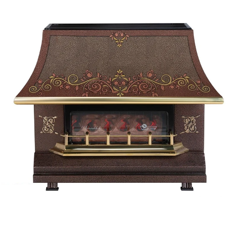 بخاری ـ شومینه 18000 ایران شرق مدل آذرخش از سری شومینه های گاز سوز طرح کلبه ای (هود دار) ایران شرق می باشد که بیش از 50 سال سابقه تولید انواع وسایل گازسوز را در کارنامه خود دارد . شومینه 18000 آذرخش از سری بخاری های با سایز بزرگ است که قابلیت گرم کردن اتاق و حال پذیرایی در ابعاد بزرگ را دارد . این بخاری مجهز به سیستم کنترل اکسیژن محیط ( ODS ) است که در صورت کم شدن اکسیژن محیط اقدام به قطع خودکار بخاری خواهد کرد . همچنین بخاری برای کنترل فشار گاز ورودی مجهز به دستگاه گاورنر می باشد .شعله بخاری دارای ترموکوپل است که در صورت خاموش شدن شعله بخاری ، جریان گاز را قطع خواهد کرد . پیلوت بخاری سه شعله است و شیر کنترل بخاری برای تنظیم میزان دلخواه شعله ولومی می باشد . در تزئینات این بخاری از قطعات برنجی براق و گرافیک روی هود استفاده شده که باعث ایجاد جلوه زیبا در محصول شده است .