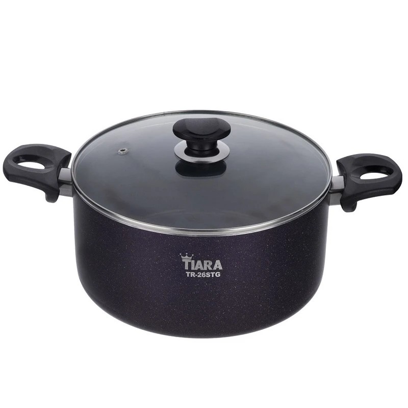 قابلمه گرانیتی تیارا سایز 26 با برخورداری از کیفیت بالا و استفاده از مرغوبترین گرانیت، نسل جدیدی از ظروف پخت پز می باشد که مطابق با تکنولوژی های روز دنیا و متفاوت با ظروف نچسب قدیمی طراحی و تولید شده و از کارایی، دوام و ماندگاری بالایی بهره مند گردیده است. این قابلمه ایرانی از جنس ترکیبی آلومینیوم با روکش گرانیتی و درب شیشه ای ساخته شده . تیارا قابلمه سایز را در سایز 26 و رنگ مشکی عرضه نموده. گرانیت ماده ای طبیعی است که کاملا بهداشتی و فاقد سرب و کادمیوم می باشد و با خاصیت حفظ طعم غذا ، گرما را در خود نگه داشته و غذا دیرتر از ظروف معمولی می سوزد و با استفاده از آن می توان از آشپزی با اطمینان و سلامت پخت بالا بهره برد. این قابلمه گرانیتی تیارا با پوشش 7 لایه، سطح چسبندگی و مصرف روغن را تا حد قابل توجهی کاهش می دهد و پوشش خارجی از کیفیت بالا و مقاوم در برابر شعله و حرارت نیز برخوردار شده است. تیارا یکی از برترین فروشندگان لوازم خانگی است که در زمینه تولید انواع ظروف پخت و پز، سرویس و قابلمه تک از جنس آلومینیوم آلیاژی و آلومینیوم خالص فعالیت دارد و اکنون با تولید سرویس های نچسب گرانیت، به عنوان یکی از بهترین و با کیفیت ترین عرضه کنندگان ظروف نچسب در بازار محسوب می گردد.