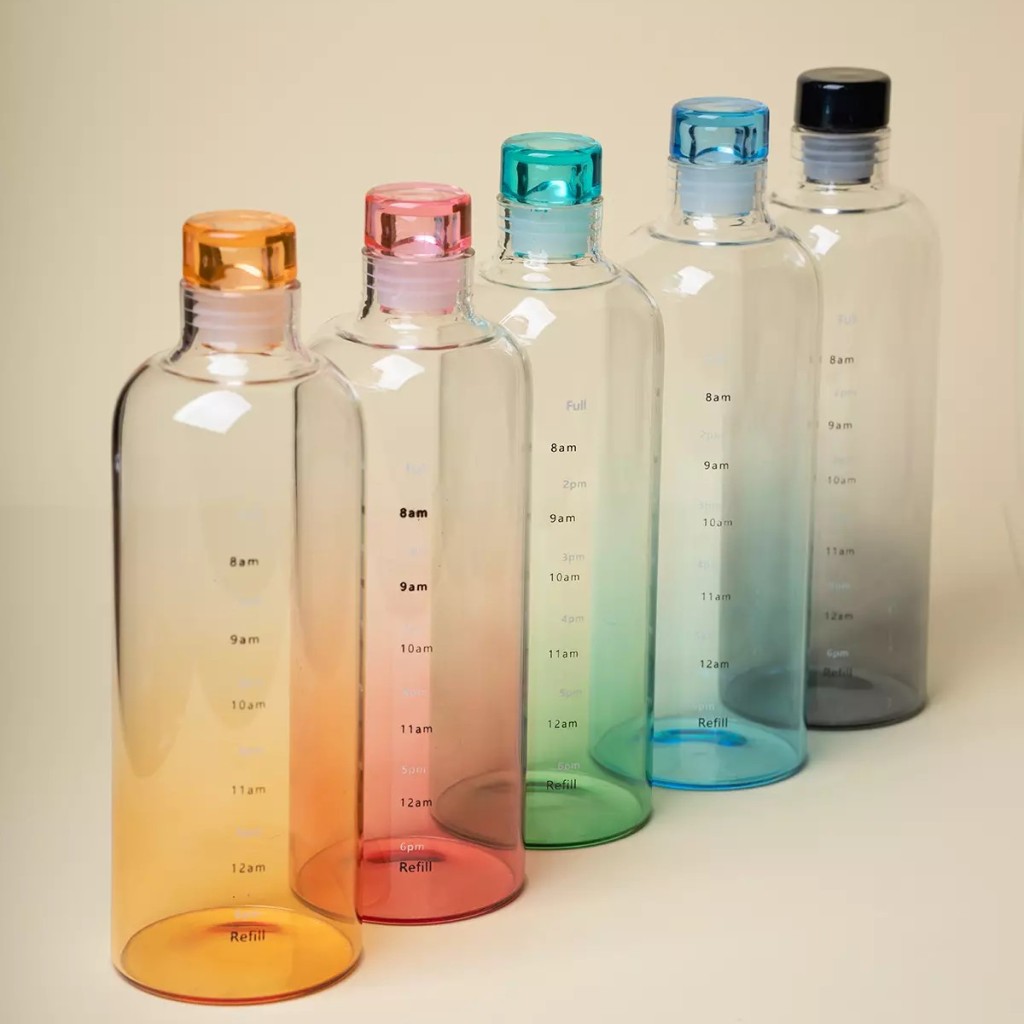 دارای طراحی مدرج است تا میزان مصرف آب خود را به راحتی پیگیری کنید. چهار رنگ متنوع — آبی، سبز، زرد و صورتی و دودی — گزینهای جذاب برای استفاده شخصی یا هدیه دادن به دیگران فراهم میکند.